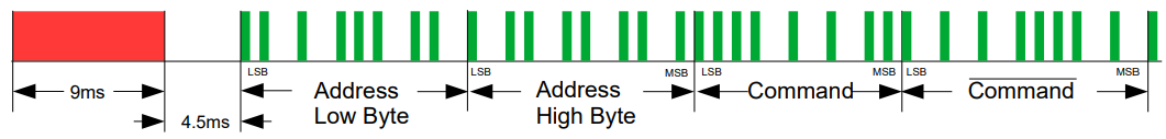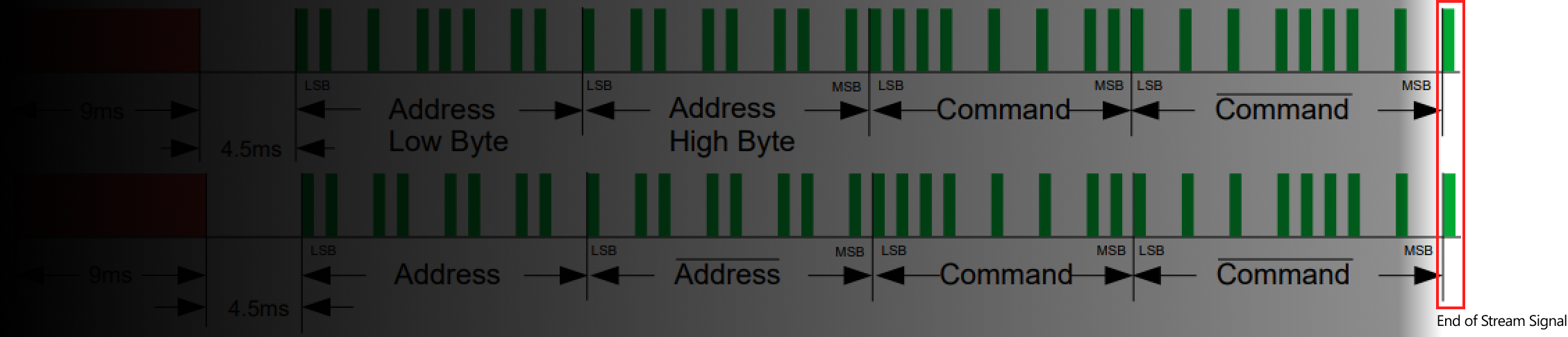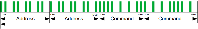 8bit Address + 8bit Address in inversed bit + 8bit Command + 8bit Command in inversed bit 의 구조를 가진다.