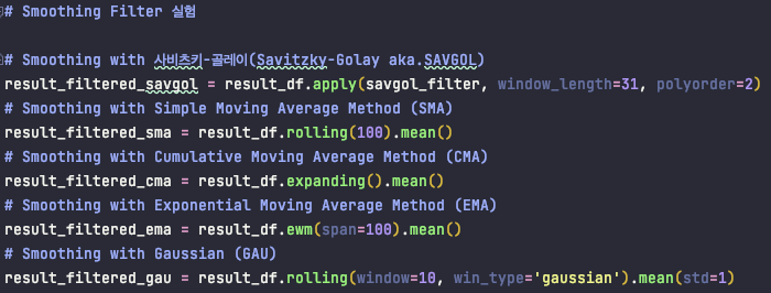 1. Savitzky-Golay aka.SAVGOL Filter (사비츠키-골레이) (scipy.signal) <- 해당 필터로 진행